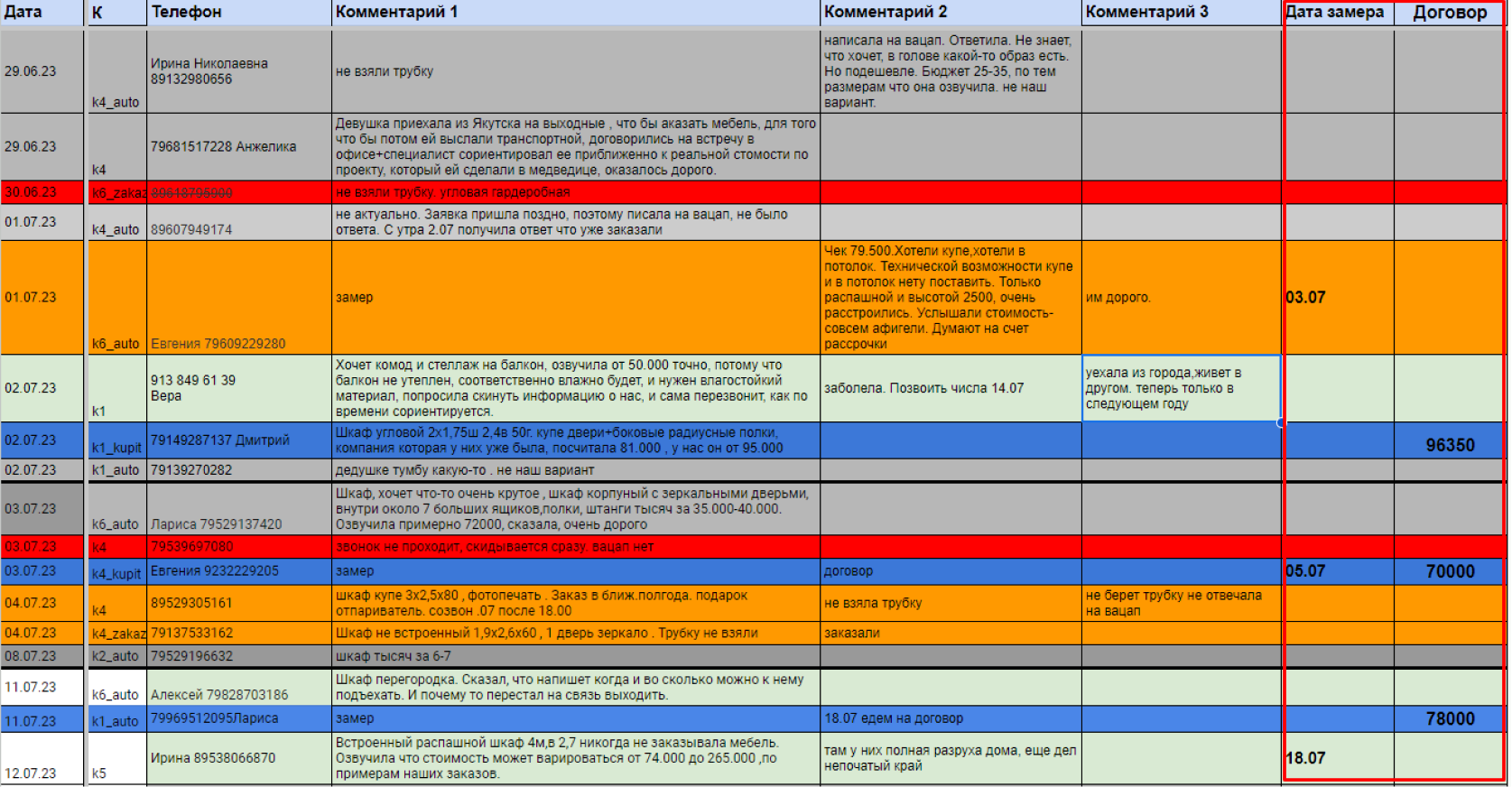 Мы создаем клиентам гугл таблицы срезов, где ведем обратную связь